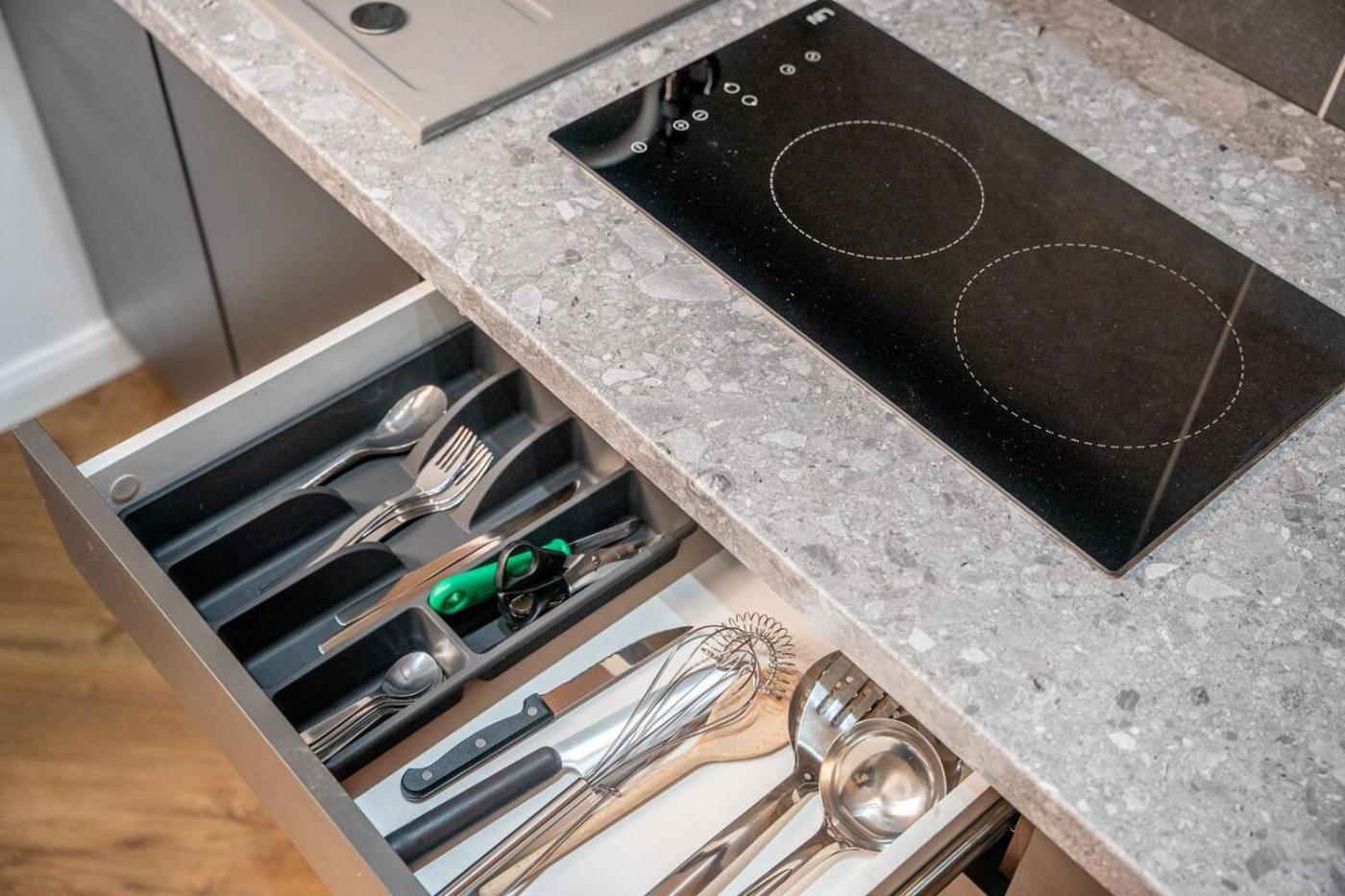 One-Bedroom Apartment. Featuring a private entrance, this apartment comprises 1 living room, 1 separate bedroom and 1 bathroom with a bath or a shower and a hairdryer. Guests can make meals in the kitchen that comes with a stovetop, a refrigerator, kitchenware and a tea and coffee maker. The apartment provides a washing machine, a wardrobe, heating and a flat-screen TV. The unit offers 2 beds. ;